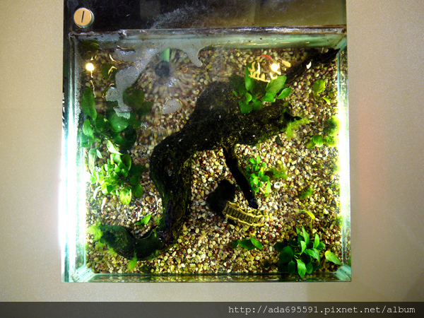 有看到我寫病歷表的桌面嗎?是一個真的水族箱,裡面還養有小魚